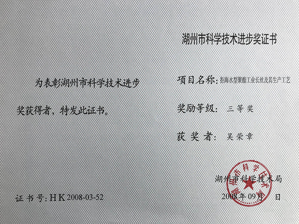 2008湖州市科技進步獎三等獎-吳榮章