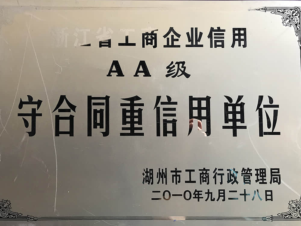 2010浙江省工商企業信用AA級守合同重信用單位